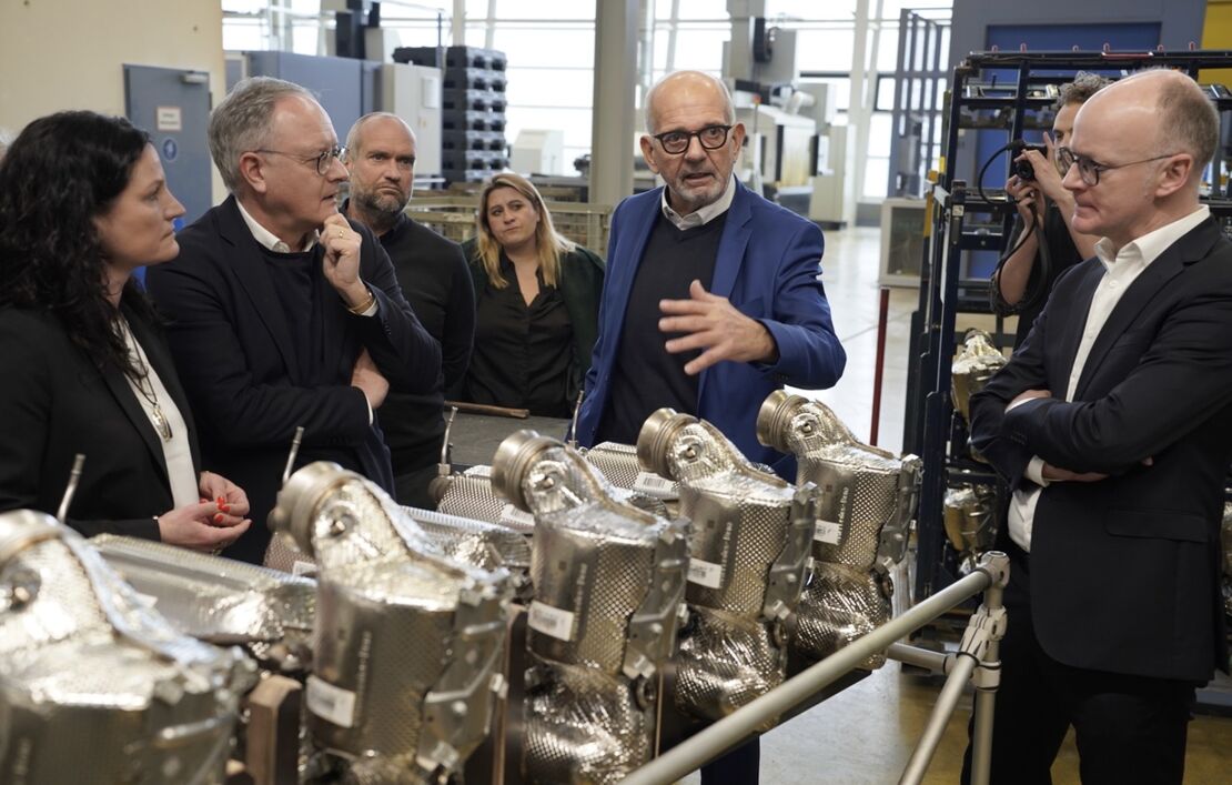 Im Anschluss folgte ein Rundgang durch die Produktionsbereiche. Dabei erläuterte Geisel die einzelnen Fertigungsschritte und gab Einblicke in moderne Produktionsprozesse, hohe Qualitätsanforderungen und komplexe technische Abläufe. Der Rundgang verdeutlichte, wie stark Effizienz, Präzision und kontinuierliche Weiterentwicklung die Wettbewerbsfähigkeit des Standorts prägen.